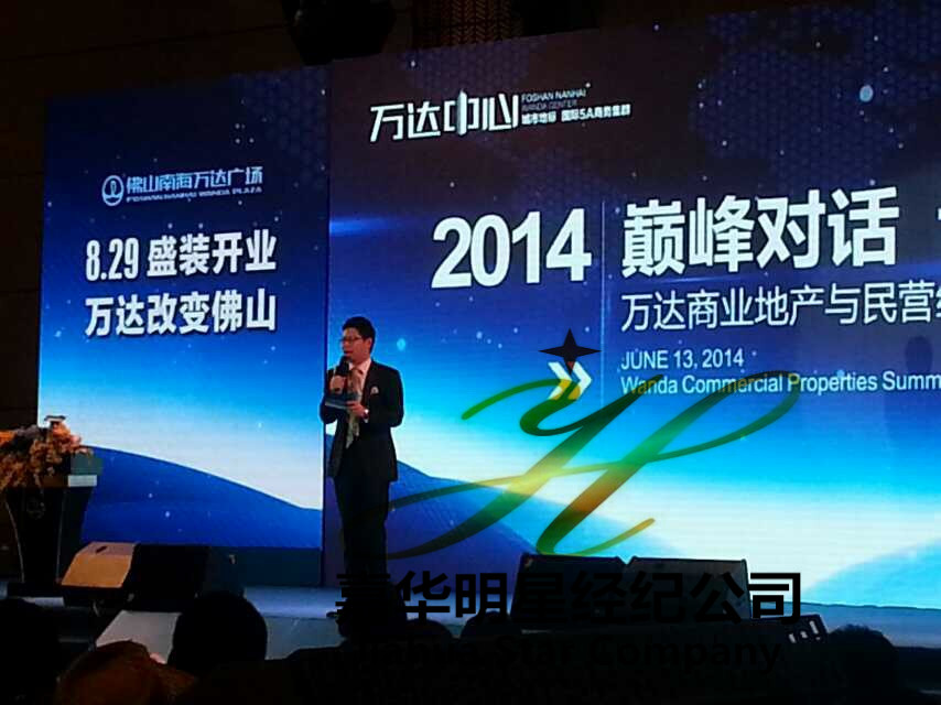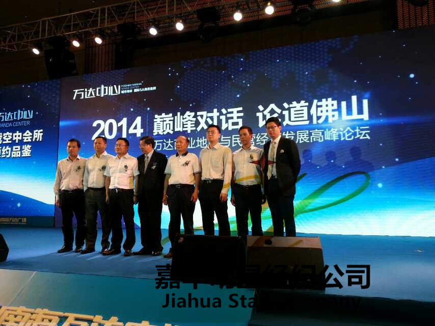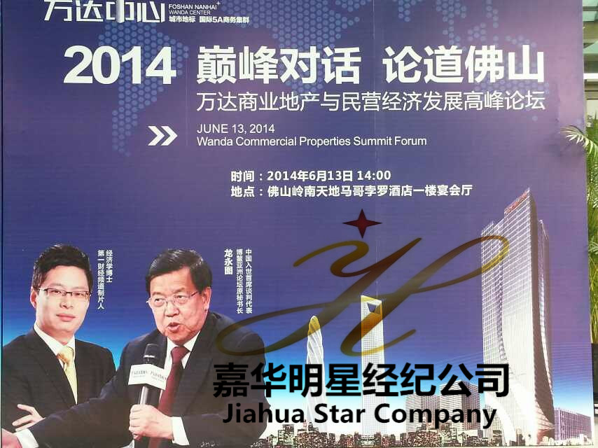 6月13日 佛山萬達投資有限公司通過嘉華明星經(jīng)紀公司邀請龍永圖、馬紅漫出席2014 巔峰對話 論道佛山 之萬達商業(yè)地產(chǎn)與民營經(jīng)濟發(fā)展高峰論壇。